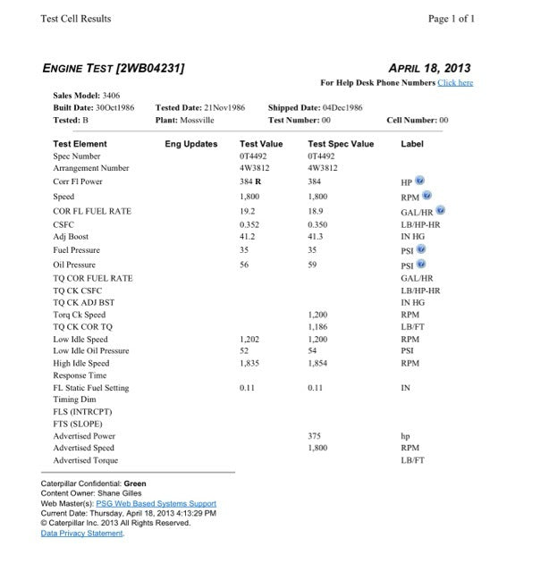 Make: Caterpillar Model: 3406B